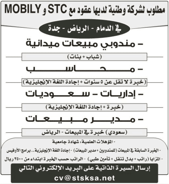 طاقات وظائف في التخصصات الإدارية والمالية والقانونية في كل المناطق