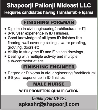 Shapoorji Pallonji Mideast Llc Requires Candidates Having Transferrable Iqama Visa Not Ther Job In Ksa 12 12 2016 Connecting People